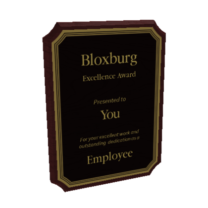 Excellence Award Welcome To Bloxburg Wikia Fandom
