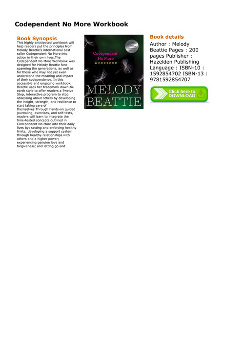 The codependent no more workbook was designed for beattie fans spanning the generations as well as for those who may not yet even understand the meaning and impact of their codependency. The codependent no more workbook was designed for melody beattie fans spanning the generations as well as for those who may not yet even understand the meaning and impact of their codependency. Ebook codependent no more workbook codependent no more workbook. Download pdf codependent no morehtml pdf freepdf search pdf books full free download online free ebook and manual for business education finance inspirational.