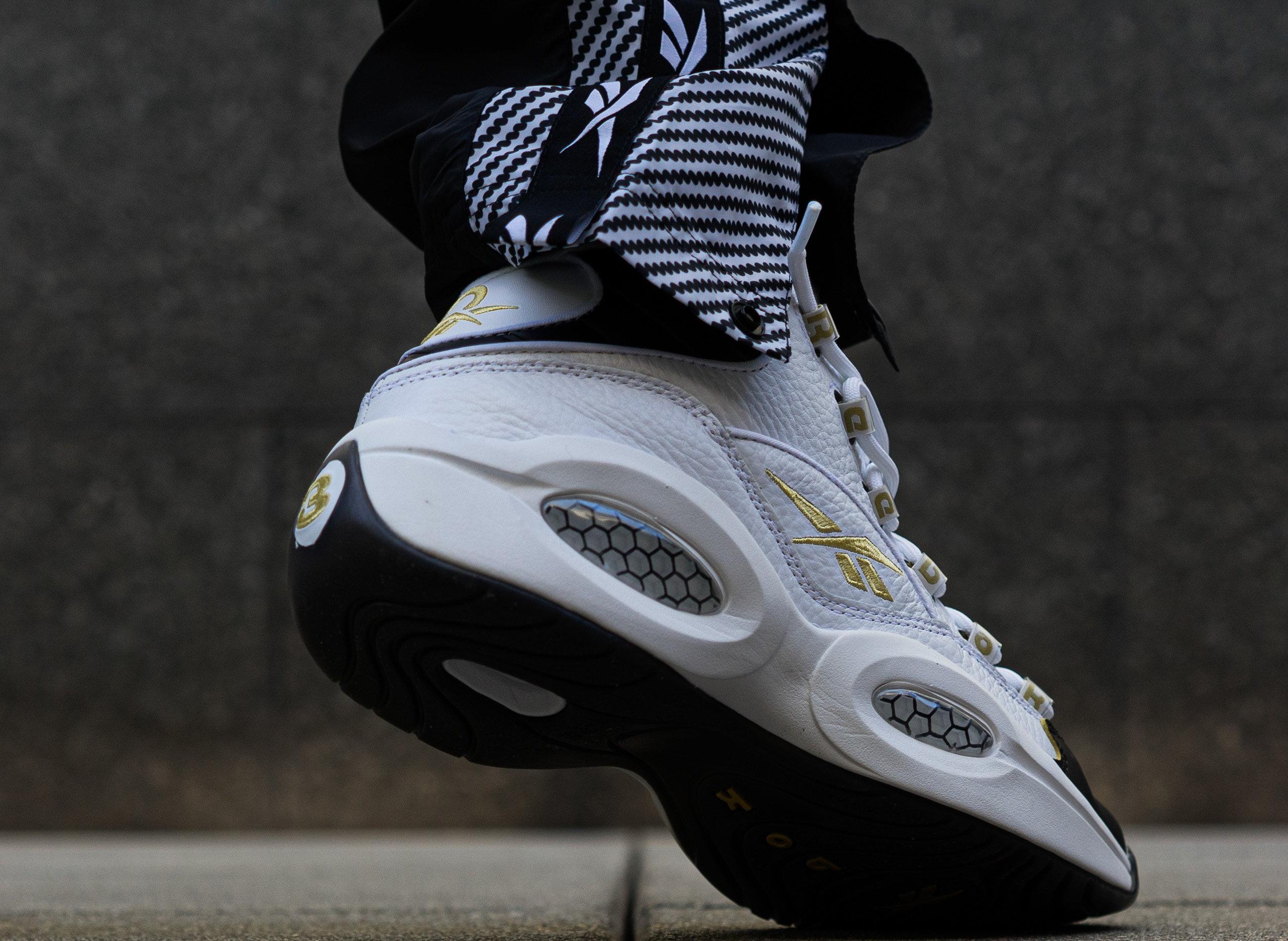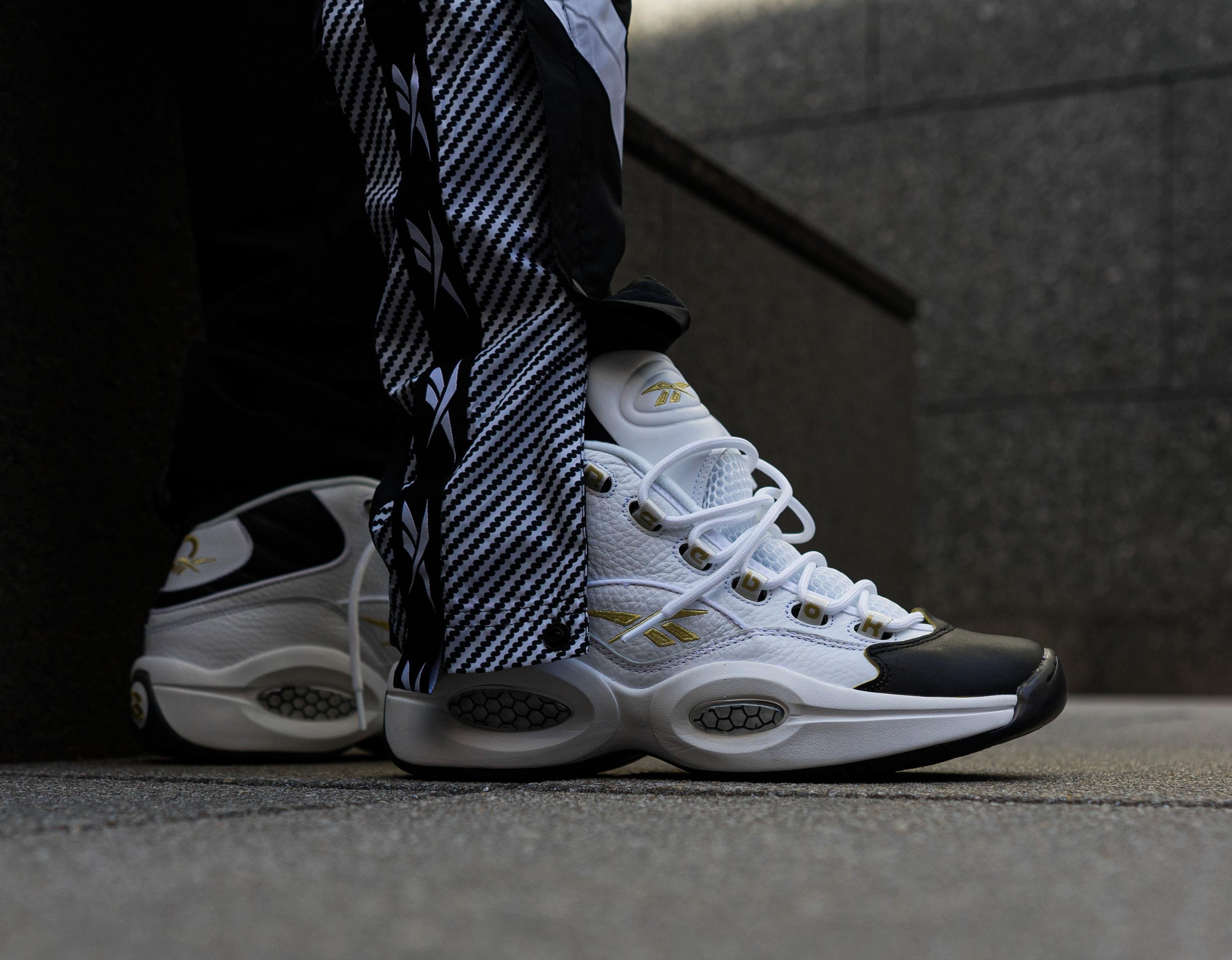Reebok Question Mid Black Toe Big Kids Shoes White Black Gold Met Eg6274