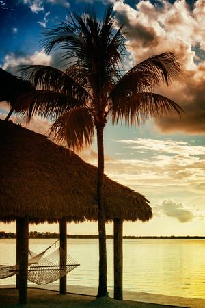 Sunset Beach Vintage Stylized Coconut Palm Tree Silhouette